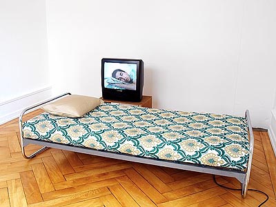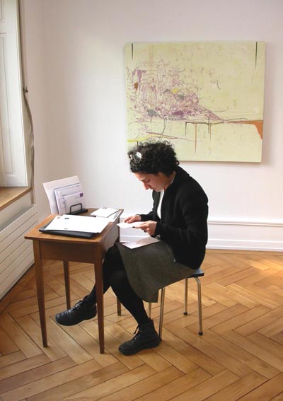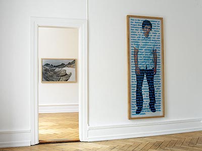 San Keller Ausstellung: 29. April bis 9. Juli 2005 ![]() San Keller im Verhör, 2003/2005 ![]() Déja Vu, 2003/2005 The Last Journey, 2003/2005 (hinten) ![]() Wer schläft zuerst, 2005 ![]() Richte die Zeit, 2005 ![]() Geldsack, 2004 ![]() Bitte läuten, bevor Sie eintreten, 2005 Die Galerie Brigitte Weiss zeigt in einem weiteren Ausstellungsprojekt mit dem Aktionskünstler San Keller eine Auswahl neuer Arbeiten und Aktionen, die in Zürich erstmals zu sehen sind. Mit der Aktion SAN KELLER IM VERHÖR macht San Keller einmal mehr die kritische Auseinandersetzung mit seinem Werk und seiner Haltung als Künstler zum Thema. San Keller hat sich am 5./6.4.2003 in der Stadtgalerie Bern von 8 Kunstkritikerinnen und Kunstkritikern je 3 Stunden lang zu seiner Arbeit verhören lassen. Die Gesprächsprotokolle dieser Aktion können in der Ausstellung nachgespielt werden, wobei die Besucher den Part von San Keller übernehmen. Ein ähnliches Konzept hat San Keller für zwei Aktionen vorgesehen, die während der Ausstellung stattgefunden haben (10.5. und 27.5.2005). Die Rolle von San Keller wurde jeweils auch von einem Kunstkritiker übernommen: - San Keller* im Verhör von Oliver Kielmayer *In der Rolle von San Keller sehen und hören Sie Giovanni Carmine. - San Keller* im Verhör von Philipp Ursprung *In der Rolle von San Keller sehen und hören Sie Tirdad Zolghadr. Mit der Aktion MEIN KONTOSTAND - mit der der Künstler während der Dauer der Ausstellung im Schaukasten vor der Galerie täglich seinen Kontostand veröffentlicht und mit dem Aktionsobjekt GELDSACK, spricht San Keller über Geld. In der Videoinstallation WER SCHLÄFT ZUERST, spielt der Schlaf erneut eine Rolle. Die Ausstellungsbesucher werden eingeladen sich bequem hinzulegen und San Keller zuzuschauen, wie er langsam einschläft. DÉJA VU war 2003 für die Biennale in Prag entstanden. Der nachträglich angebrachte Text auf dem Portrait des Künstlers in Lebensgrösse thematisiert das Risiko des Scheiterns eines Aktions-Konzepts. Fotografien von Schnittholz verweisen auf die Aktion und das Insert zu THE LAST JOURNEY (2003) und ein Brief kommentiert die Aktion SAN KELLER VERTRAUT IHNEN - eine Aktion die während der Ausstellung "Make it happen" im Kunstmuseum Bern (2004) stattgefunden hat. Mit RICHTE DIE ZEIT und SAN KELLER - BITTE KLINGELN sind zwei Aktionsobjekte betitelt. MASQUERADE ist ein Gästebuch der besonderen Art, indem sich Besucher zeichnend eintragen sollen. Die Audioinstallation FREMDE IM ZIMMER hat San Keller 2004 für die Edition Haus am Gern (www.hausamgern.ch) realisiert. San Keller, geb. 1971, lebt und arbeitet in Zürich. Aktions- und Ausstellungskalender (Auswahl) 2005: CATALOGUE RAISONNÉ, Zentrum Paul Klee, Bern; BEST OF HARDAU San Dance Company, "KunstÖffentlichkeitZürich", Züirich; GEHEN IST GOLD / THE GREAT LIGHTENING, "Sentieri e avvistamenti", CAMeC, La Spezia; A ROYAL DECISION / ANNUNCIATIONS, "Sharjah Biennal", United Emirates; COME TOGETHER, San Keller/Su Yung Park, "impex" Kasko, Basel; TAFELRUNDE, "Silent Talk", MAK, Wien; FREINACHT IN DER HARDAU, "KunstÖffentlichkeitZürich", Zürich; SANRISE OR SANSET, "N/B", Attitudes, Genève. 2004: MAKE IT HAPPEN, "Bern Gegenwart", Kunstmuseum Bern; HISTORIA DE UN ARTISTA / GELDSACK, "Bienal de arte contemporaneo", Cochabamba; IN/OUT, Display Galerie, Prag; SAN KELLER SHOW, "Fakelore", Hebbel Theater Berlin; OUR WAY / DISCOVER THE LIFES OF STRANGERS, "Theaterformen", Braunschweig/Hannover; BESITZEN SIE SAN KELLER, "I need you", Centre Pasqu'art, Biel; SAN DAYS, Schulkreis Schwabgut, Bern; AMERICAN DREAM / THE GREAT LIGHTENING, "visas for thirteen", P.S.1 Contemporary Art Centre, New York. ![]() Schreiben Sie dem Kunstbetrachter einen Liebesbrief! (seit November 2002) ![]() Ausstellungsansicht "Der San Keller Test". Tisch und 2 Stühle, 2 San Sterne, 2 Infoständer, Fragebogen und Dokumentationsmaterial (Raum hinten) Hiddenwords - 2001/2002. Suchen Sie nach den verborgenen Worten. 40 Farbfotografien auf Alu, je 35 x 50 cm (Raum vorne) "San Keller schläft an Ihrem Arbeitsort" (seit Juni 2000) Freistehender Sockel mit den Kissen von allen bisherigen Schlafverträgen, San Stern und Flyer (Raum vorne) Home |